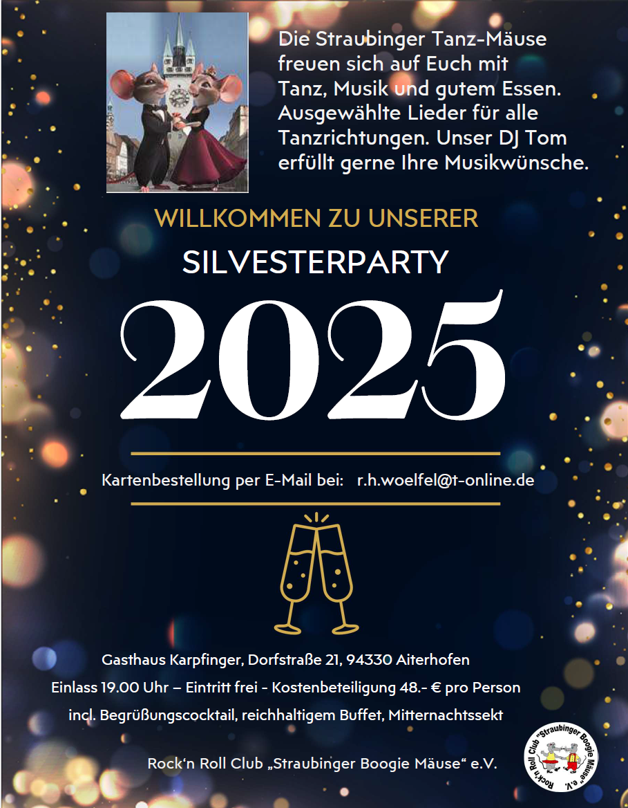Gasthaus Karpfinger, Dorfstraße 21, 94330 Aiterhofen Einlass 19.00 Uhr – Eintritt frei - Kostenbeteiligung 48.- € pro Person incl. Begrüßungscocktail, reichhaltigem Buffet, Mitternachtssekt durch das...