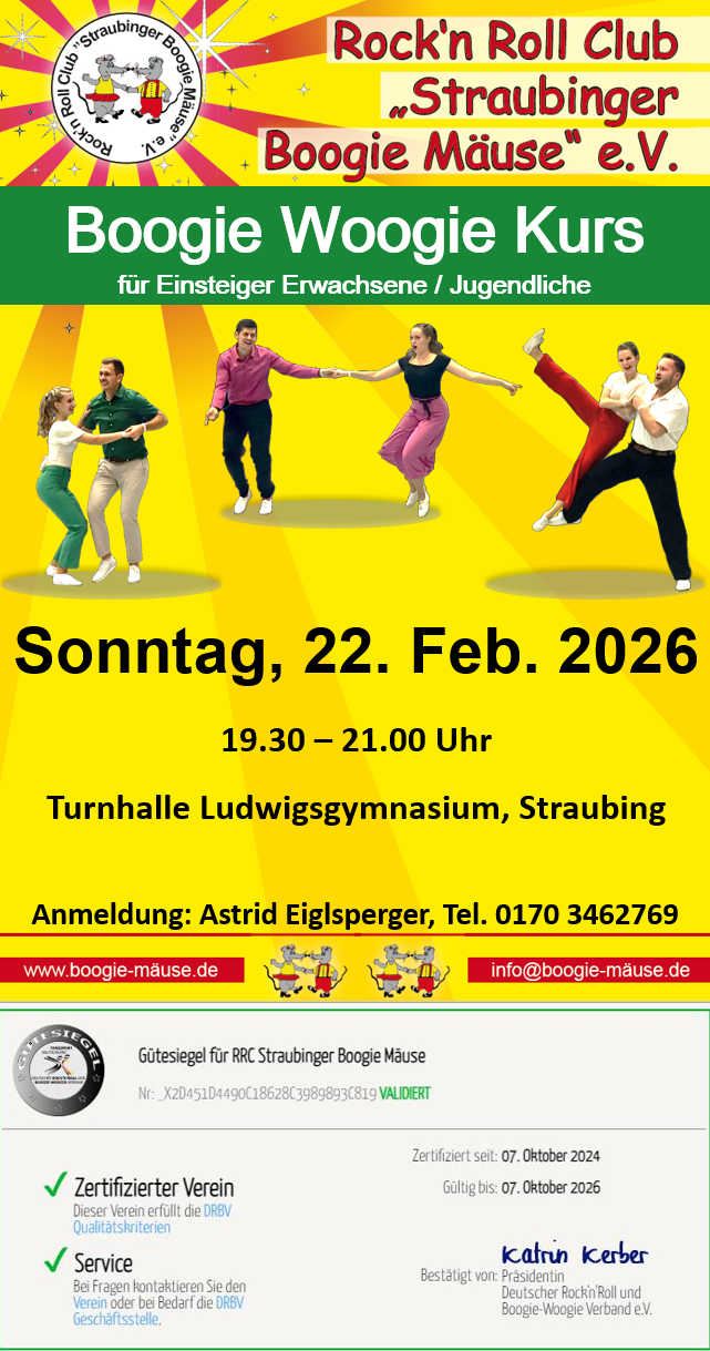 Sonntag, 22. Feb. 2026, 19.30 – 21.00 Uhr, Turnhalle Ludwigsgymnasium, Straubing, Anmeldung: Astrid Eiglsperger, Tel. 0170 3462769